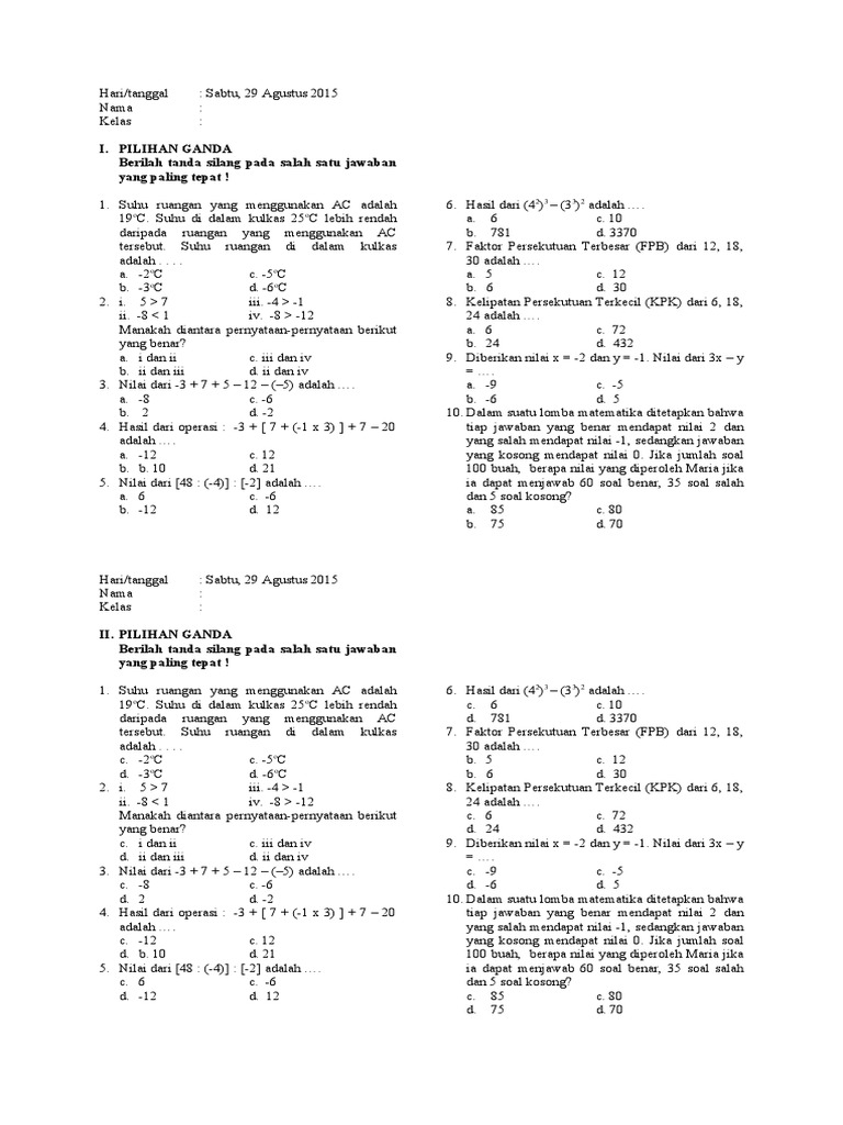 Tiga buah lampu hias menyala pertama kali secara bersamaan pada pukul 18.30.11. Senyawa hidrokarbon terdiri dari atom karbon (c) dan atom hidrogen (h). Kelipatan dari angka 6 adalah 6, 12,18, 24, 30 … sedangkan contoh soal kpk missal: Faktor persekutuan terbesar dan kelipatan persekutuan terkecil untuk sd. Lampu merah menyala setiap 2 detik, lampu kuning setiap 5 detik.